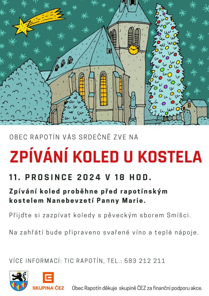 Zpívání koled proběhne před rapotínským kostelem Nanebevzetí Panny.
